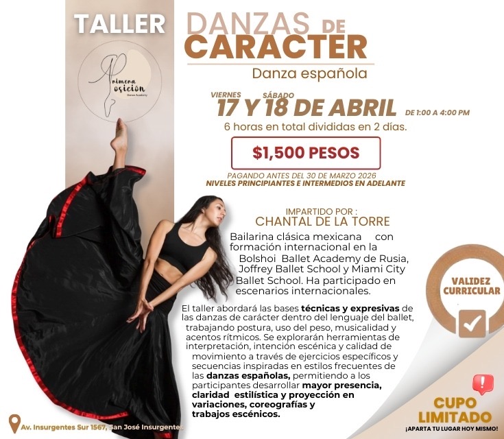 Requiere evaluación previa o experiencia mínima recomendada en técnica de ballet.